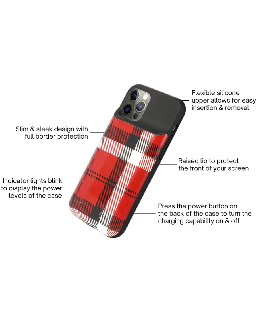 Stay charged on the go with our�Red Plaid�Ultra Battery Case! Pretty powerful and protective charging case in a slim sleek and lightweight design.