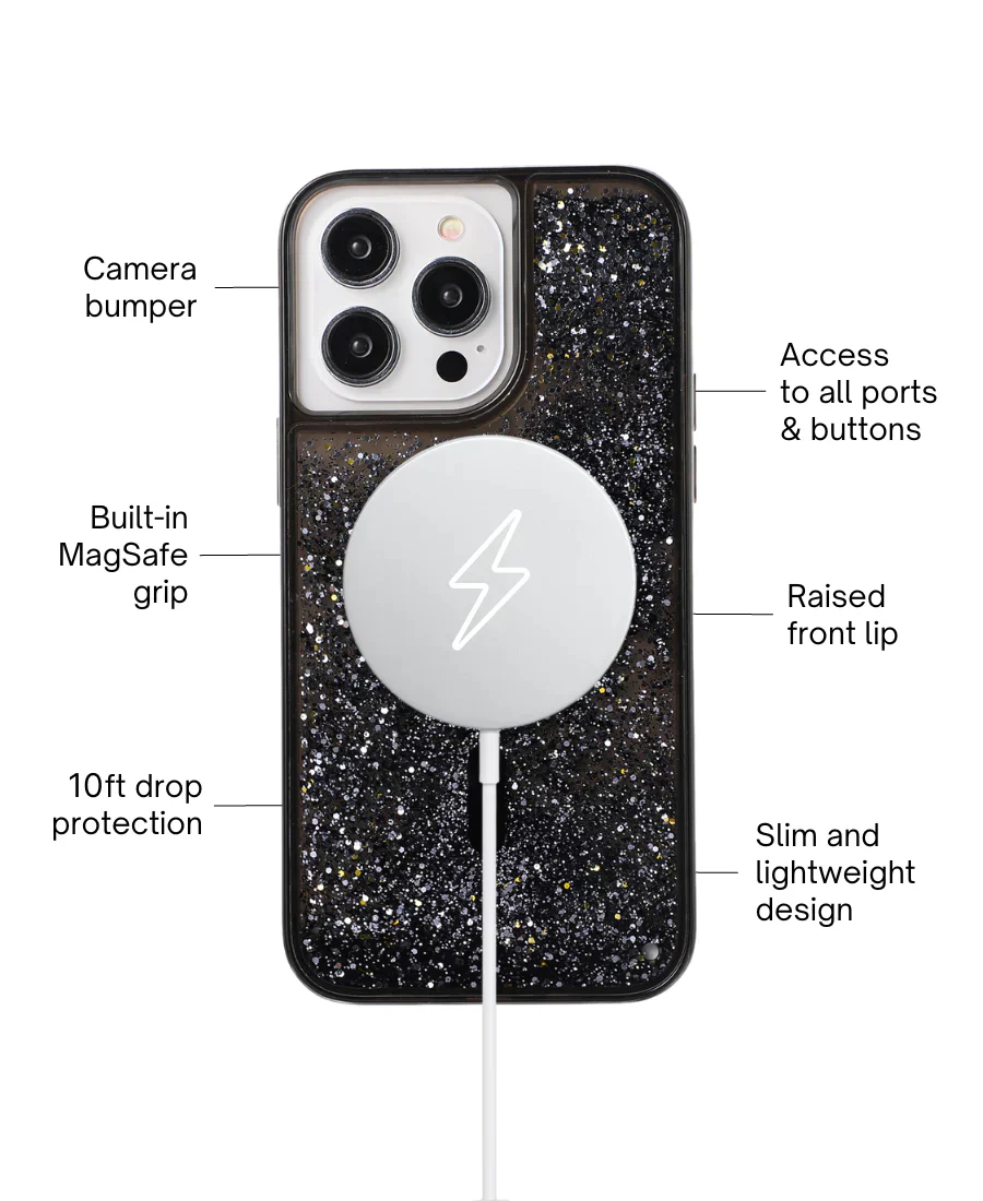 Protective MagSafe Phone Cases with floating glitter for added flair!
