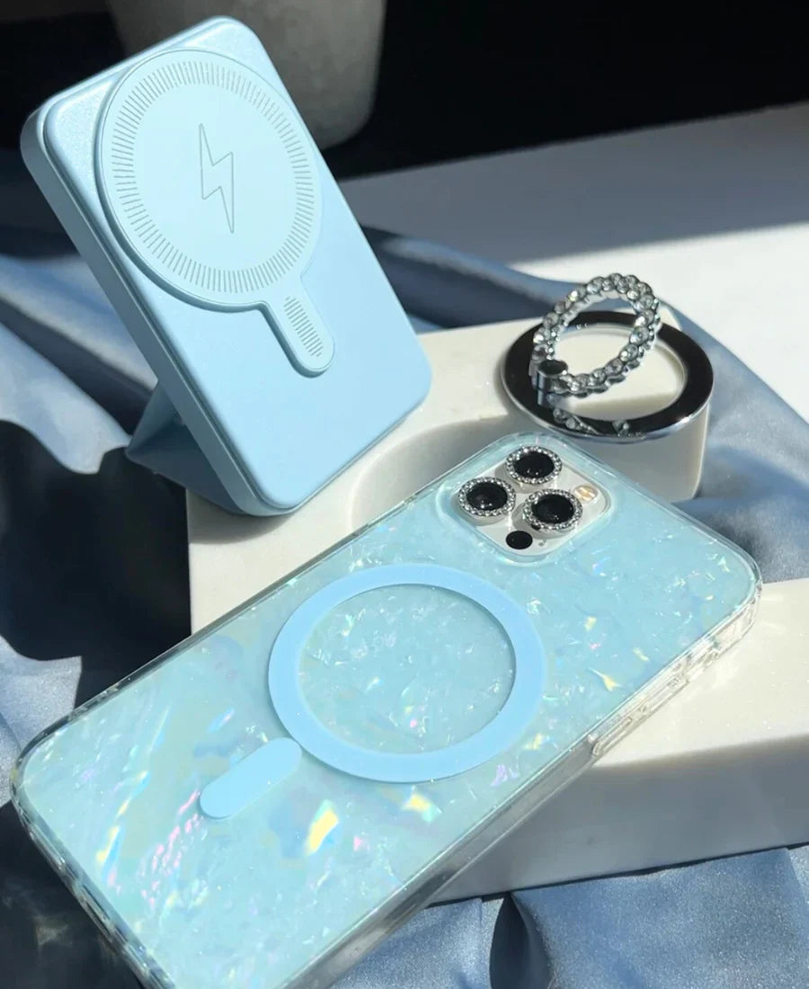 MagSafe phone case with a pearlescent effect and sparkle of glitter that steals the spotlight! Protection without sacrificing style.
