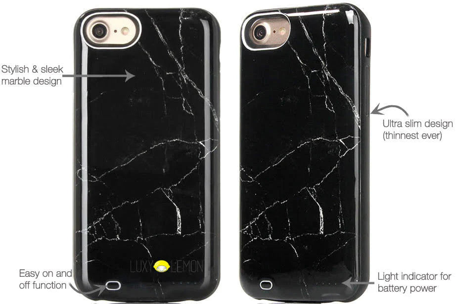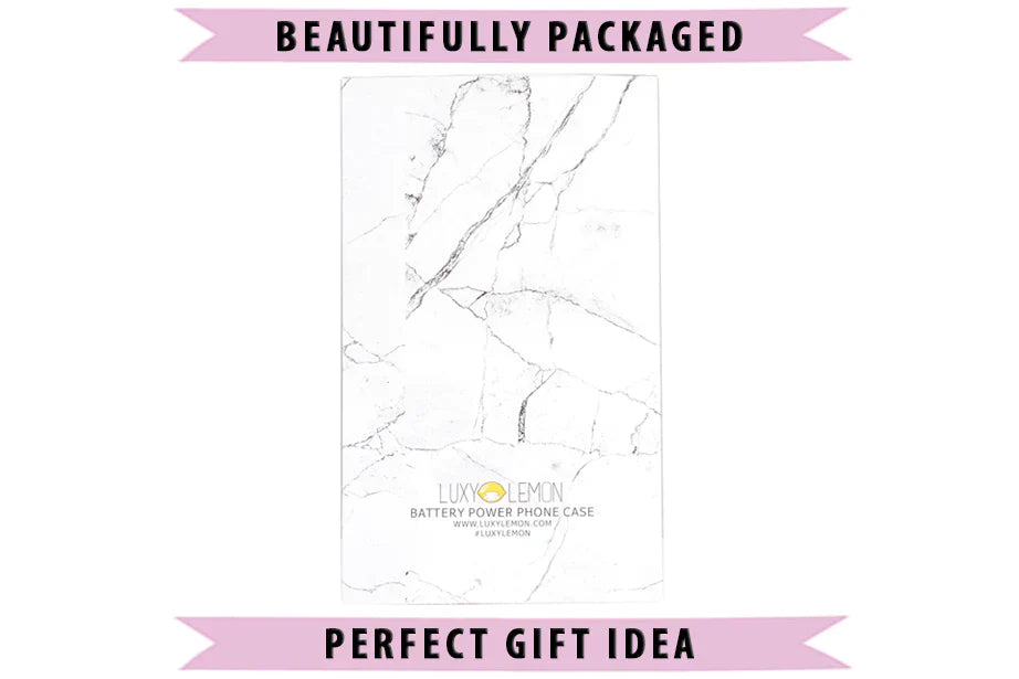Charge your device on the go with this built in external battery pack phone case! Our lightest and slimmest case to date featuring a sleek marble design. Provides a charge of 60-100% extra battery life to your device depending on your phone model.