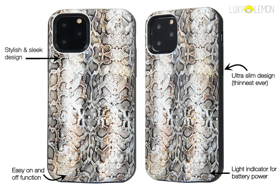 Charge your device on the go with this built in external battery pack phone case! Our lightest and slimmest case to date featuring a sleek marble design. Provides a charge of 60-100% extra battery life to your device depending on your phone model.