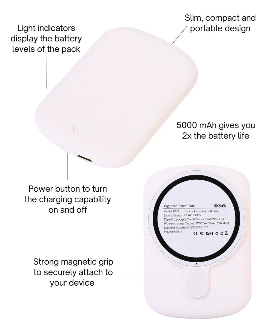 Simply snap it on press the power button and you're ready to go! Compatible with all MagSafe phones (iPhone 12 13 14 and 15 models) and our MagSafe Phone Cases.