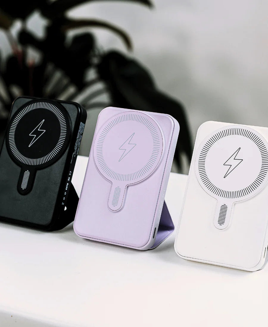 Powerful portable MagSafe battery packs allow you to charge wirelessly anytime anywhere. Prop it up with the built-in collapsable kickstand to keep your phone upright for added convenience & functionality!